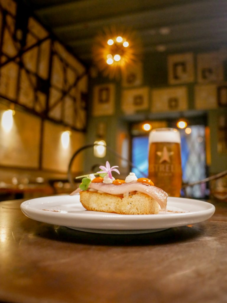 Y en el local con más solera, el más canalla de la Ruta, la Bodega d’en Rubén (C/ d’En Robador, 33), una clara reivindicación de la sencillez: Tostada con mantequilla y anchoa, acompañada de brotes frescos y salmón ahumado.