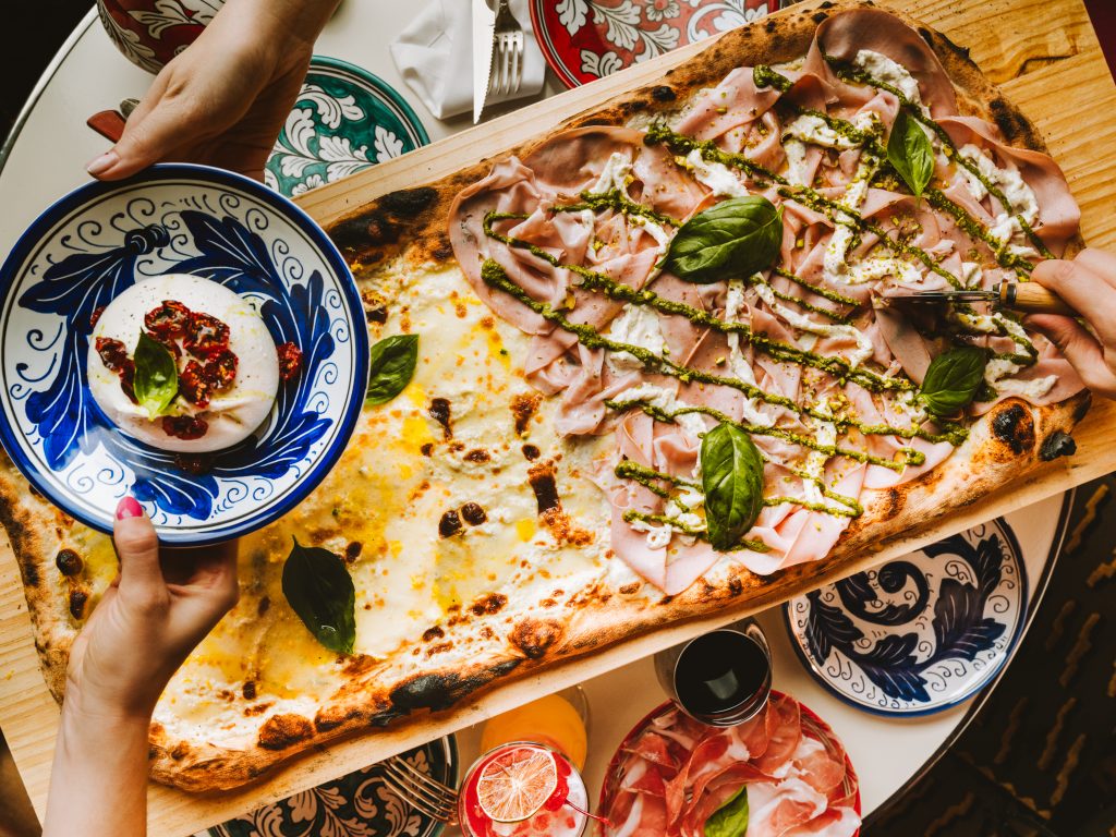 El secreto de su éxito reside en una masa de fermentación lenta elaborada con harinas italianas de alta calidad, resultando en una base ligera, aireada y de fácil digestión. Estas piezas se hornean en hornos italianos de altísima temperatura, diseñados para replicar las condiciones exactas de las grandes pizzerías de Nápoles y Roma. En locales como Circolo Popolare, la experiencia se eleva con la pizza al metro, una oda al exceso bien entendido y al placer de compartir. Cada pizza es estirada y montada a mano por sus pizzaiolos, quienes utilizan ingredientes impecables como tomates seleccionados, mozzarella artesana y aceites aromáticos.