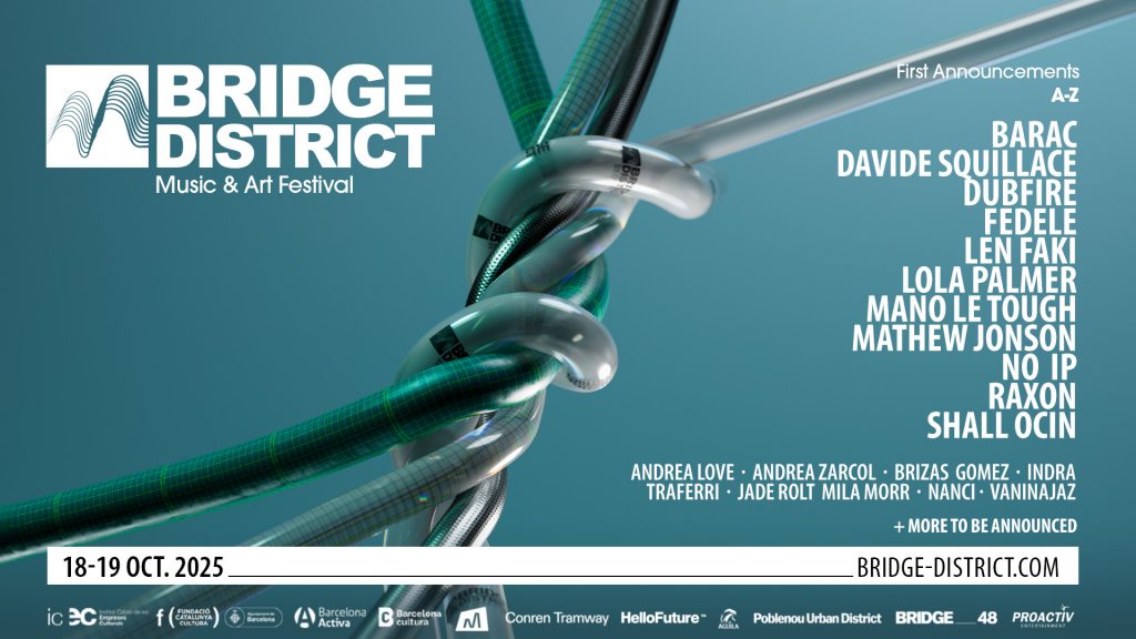 El Bridge District Festival 2025 promete ser uno de los grandes acontecimientos del otoño en Barcelona. Entre los primeros artistas confirmados destacan Dubfire, Len Faki y Mathew Jonson, nombres de referencia internacional que garantizan una experiencia musical intensa y vibrante. A ellos se suman Davide Squillace, Barac y Mano Le Tough, junto a talentos emergentes como Lola Palmer, NO_IP, Raxon y Shall Ocin. El festival también apuesta decididamente por el talento femenino, con artistas como Andrea Love, Mila Morr, Andrea Zarcol, Nanci, Gomez, Vaninajaz y Jade Rolt, quienes aportarán frescura y diversidad a la programación.
