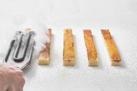 - El Turrón Rovell d’Ou Cremat, elaborado con mazapán de almendra marcona, vainilla Bourbon y yema tostada.