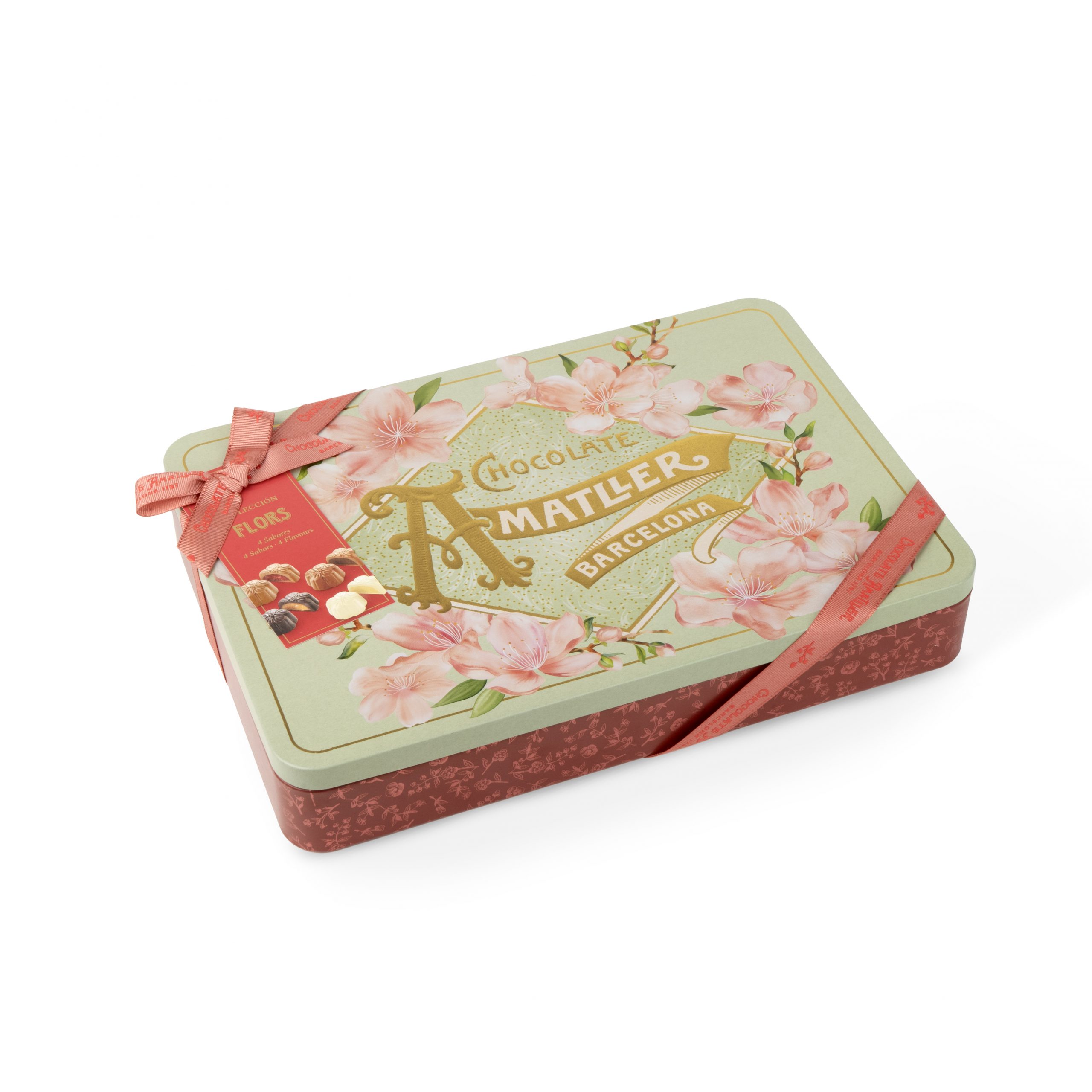 El estuche metálico Flors, inspirado también en la iconografía modernista, reúne 48 bombones con un equilibrio impecable entre fruta, notas cítricas y matices de café. Presentarlos en el centro de la mesa, junto a copas de espumoso reserva o un vino dulce, transforma el final de la comida en un ritual del que nadie quiere despedirse.