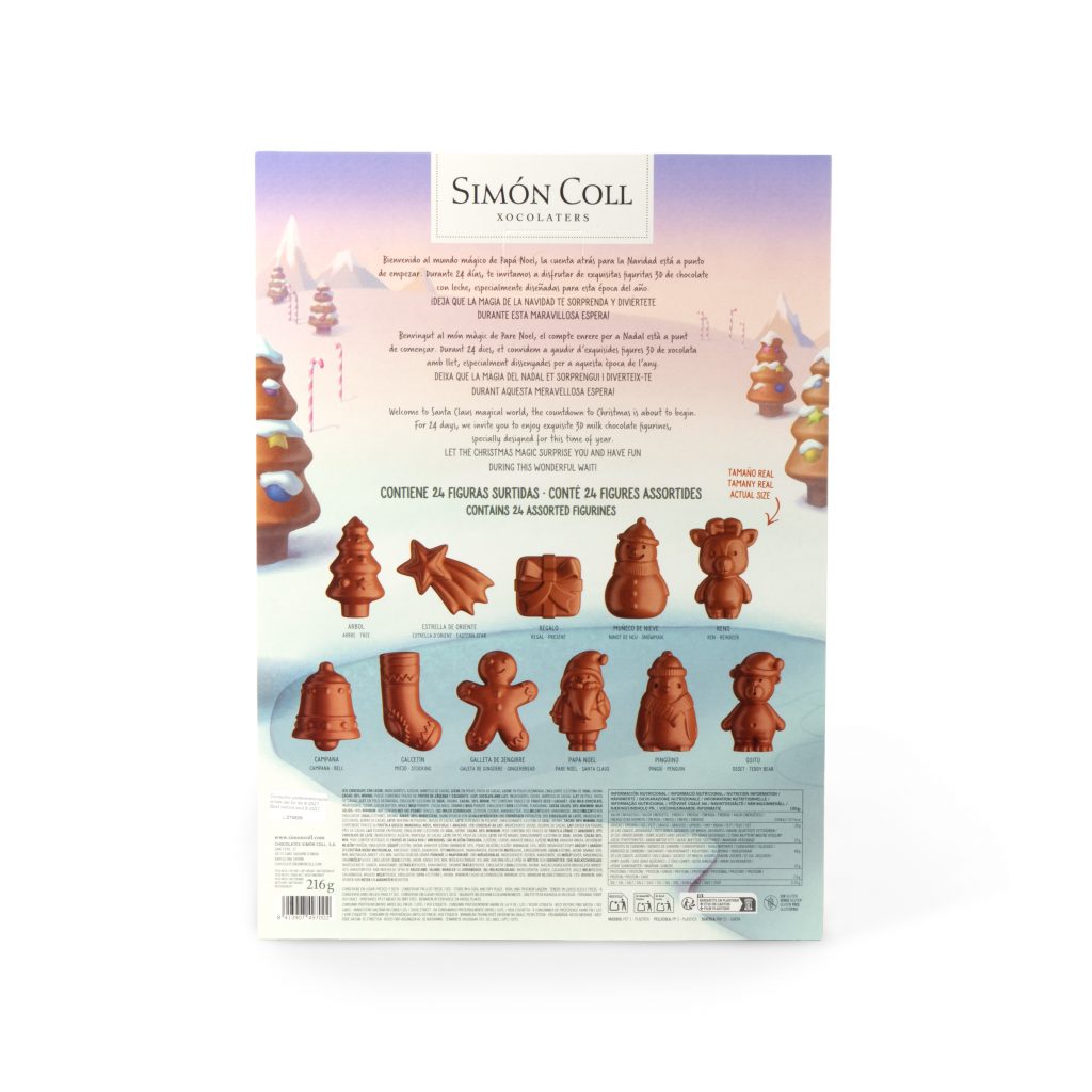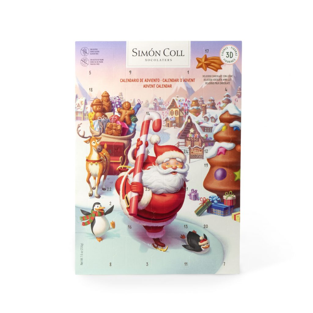 El Calendario Santa destaca como una postal viva de un pueblo nevado donde Papá Noel, un reno travieso y unos pequeños pingüinos orquestan la espera más dulce del año. Detrás de cada ventana, una figura 3D de chocolate con leche, creada para sorprender a diario y despertar la ilusión infantil sin renunciar a la calidad que distingue a Simón Coll.