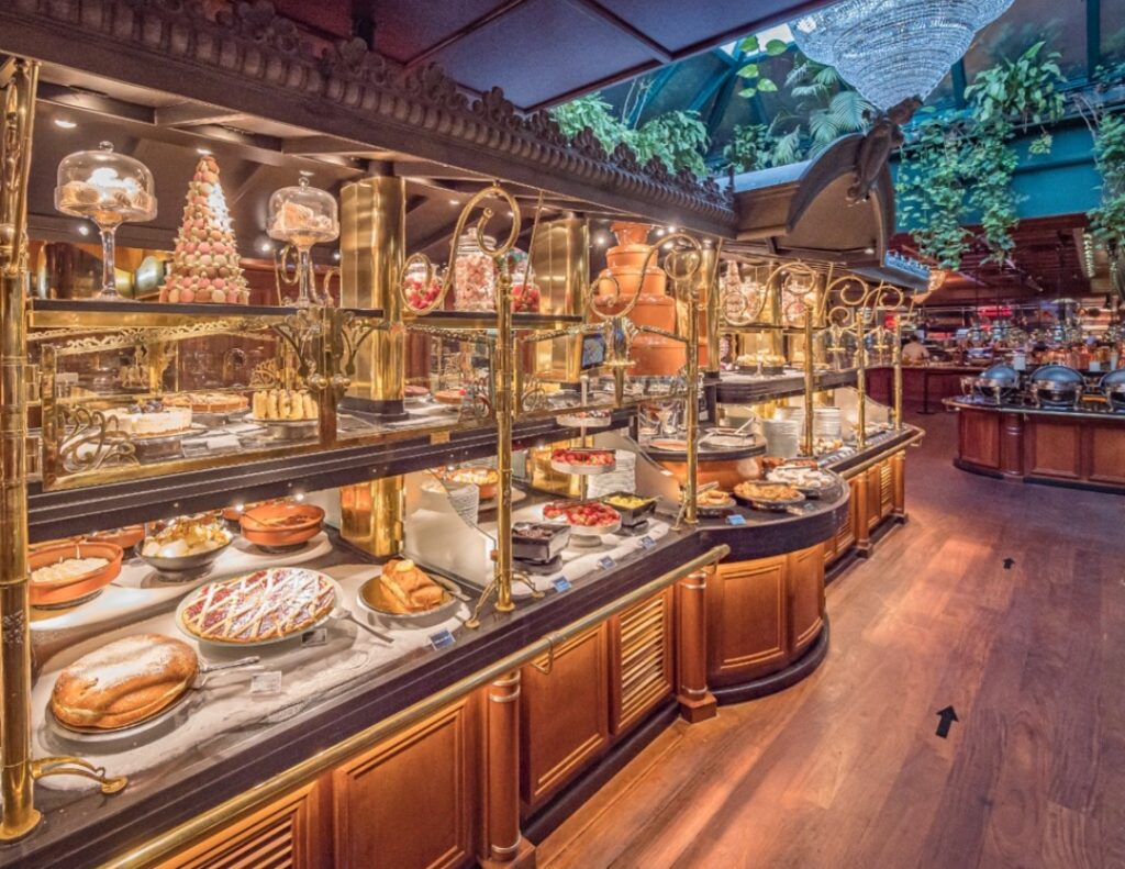 El recorrido es una inmersión total: la zona de la Rôtisserie sorprende con carnes y aves preparadas al momento, La Mer brilla con mariscos frescos coronados por una cascada de bogavantes, y La Pâtisserie endulza la experiencia con clásicos elaborados cada día por maestros pasteleros.