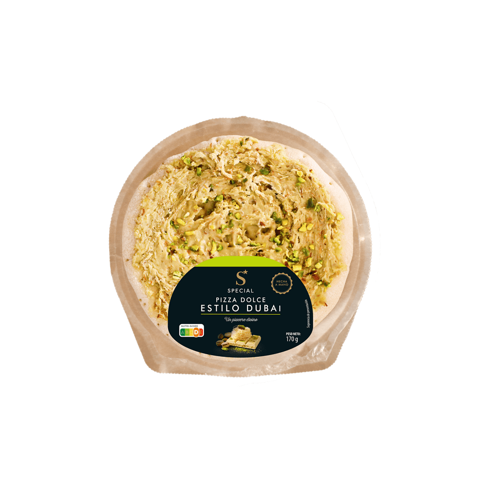 Para quienes no se deciden entre dulce y salado, también hay opciones. La crema de pistacho es un producto versátil que puede acompañar tanto recetas dulces como saladas, mientras que la Pizza Dolce estilo Dubái aporta un toque exótico y una textura tierna que la hacen irresistible.