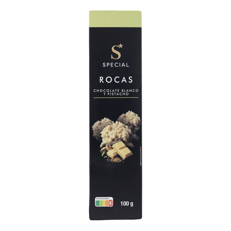 Rocas de chocolate blanco y pistacho. PVP: 2,99 euros la unidad.