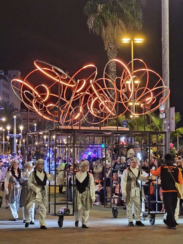 Este año, la cabalgata ha destacado por la incorporación de nuevos elementos visuales y artísticos. En total, más de 1.300 artistas participaron en el evento, incluyendo escenógrafos, coreógrafos, músicos, bailarines y actores que llenaron las calles de magia y color. La creatividad local brilló en cada carroza, que fue diseñada por artistas de la ciudad, y entre las más llamativas se encontraba la carroza de Baltasar, que presentó una doble plataforma inspirada en la música africana, acompañada por djembés gigantes y una coreografía de bailarines de origen senegalés.