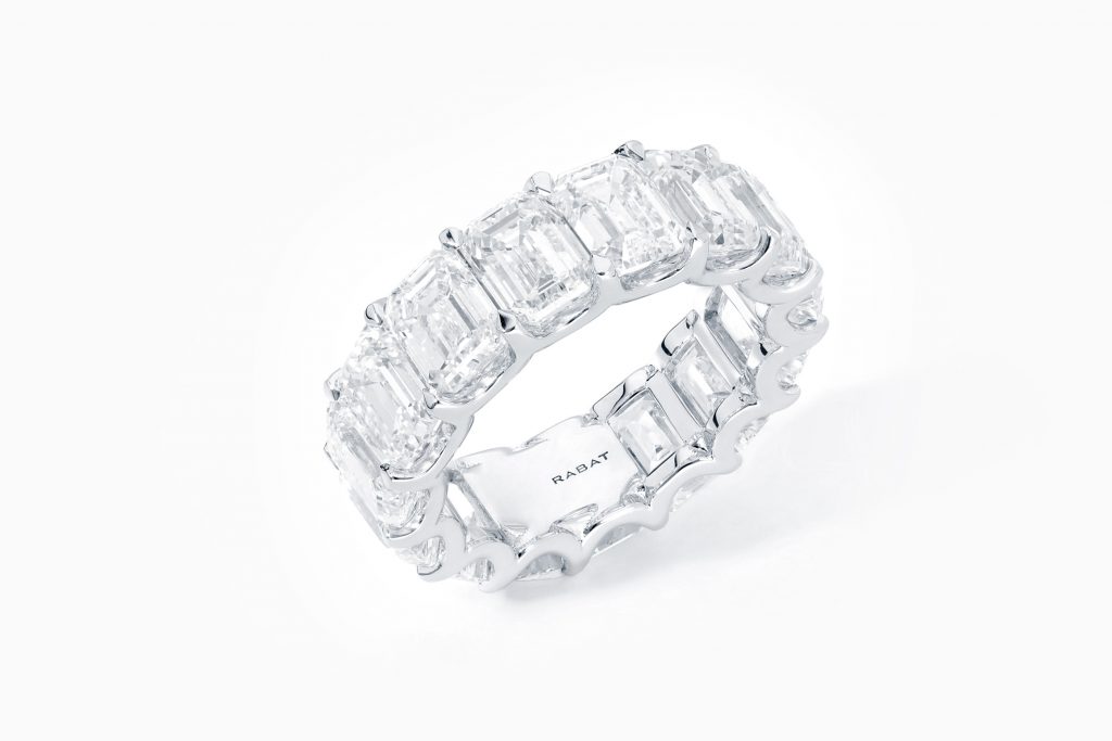 Foto © RABAT Detalle del anillo RABAT Red Carpet, alianza de oro blanco con diamantes talla esmeralda.