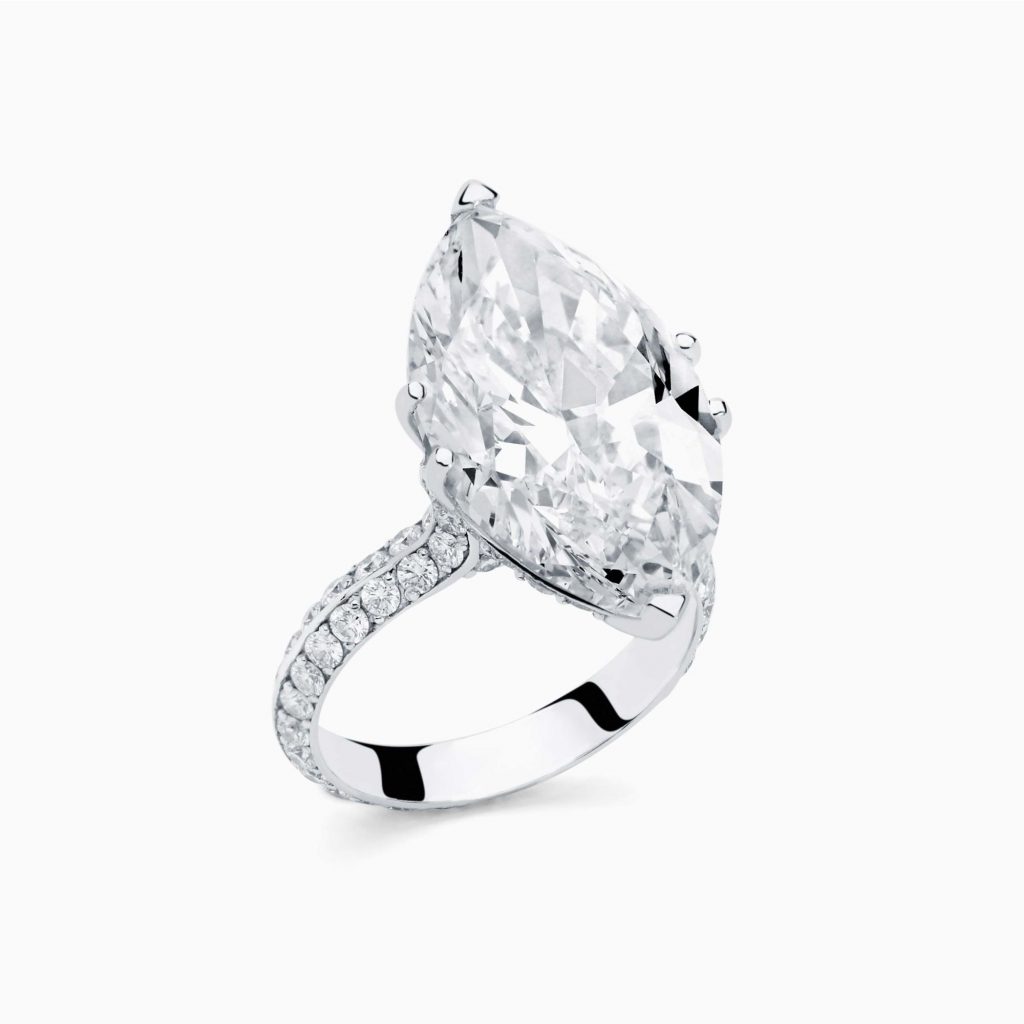 Una pieza icónica que combina la delicadeza del brazo pavé con la presencia imponente de la talla marquise, símbolo de distinción eterna.