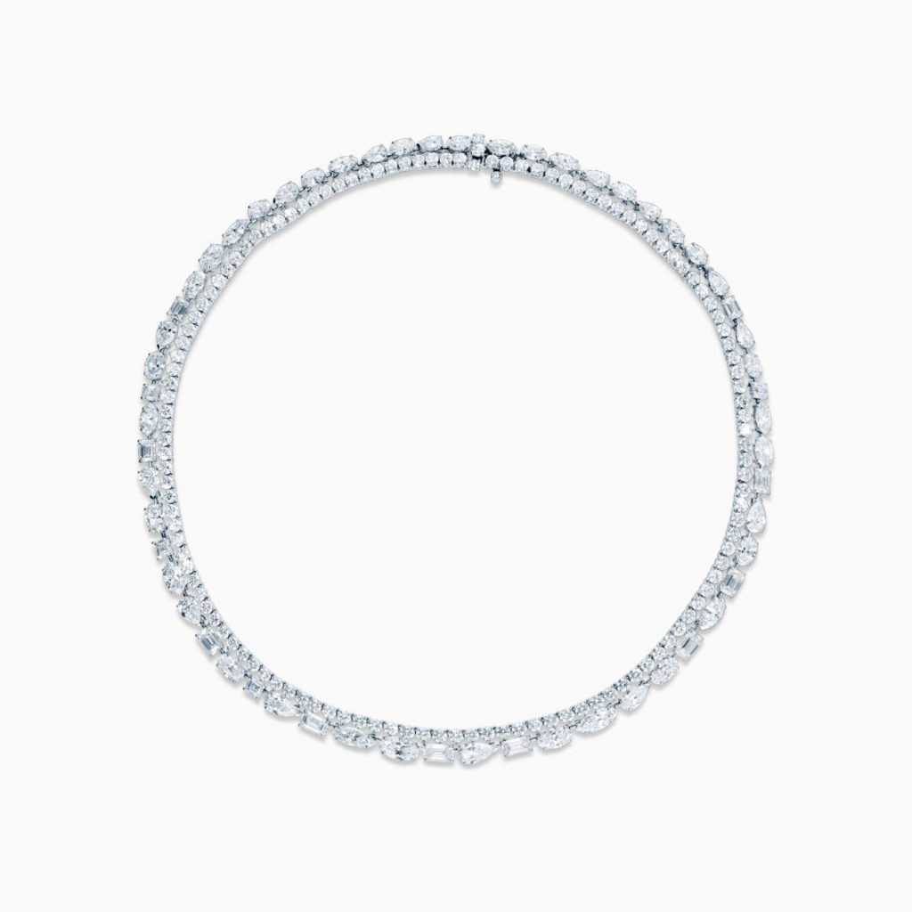 Collar rivière de dos filas de oro blanco con diamantes multitalla