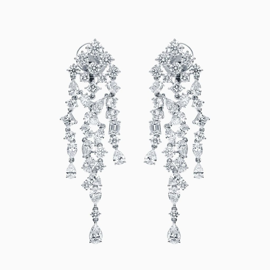 Pendientes largos cascada de oro blanco con diamantes multitalla