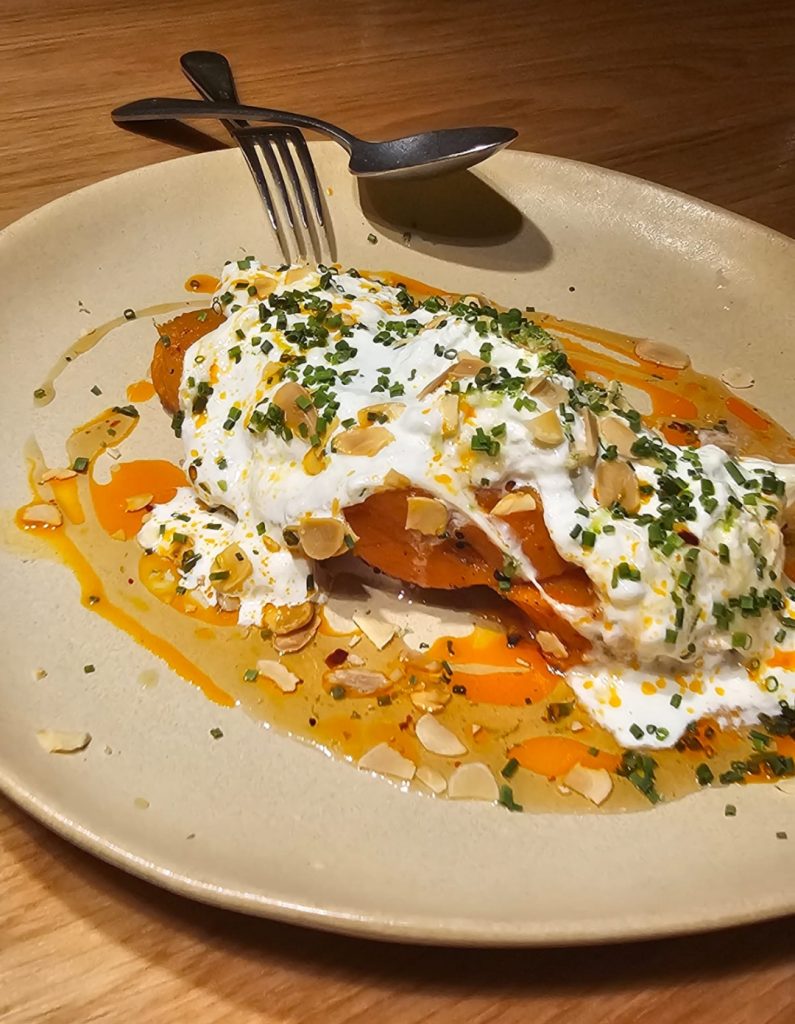 Para los amantes del producto marino, el chef recomienda la Corvina o el Llobarro (lubina) a la brasa, servidos con guarniciones vegetales trabajadas con el mismo mimo que la proteína principal, como el cremoso de berenjena ahumada. Los arroces, por su parte, son el alma de las mesas compartidas: desde el potente Arroz de Llantol hasta el clásico de gambas y mejillones, cada grano absorbe el carácter del caldo artesanal elaborado a diario en el restaurante.
